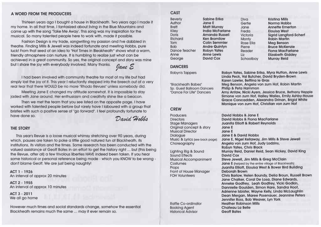 2011 Revue The story… This was three act, multi-generation comedy drama with romance thread, set in three time zones. Original music. Like Loading...