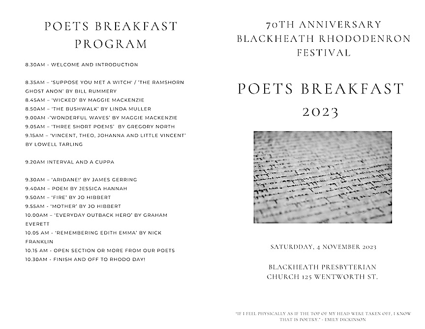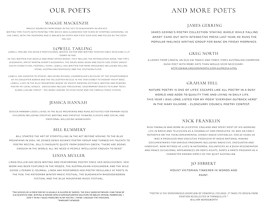 Programme of Poets – subject to change: